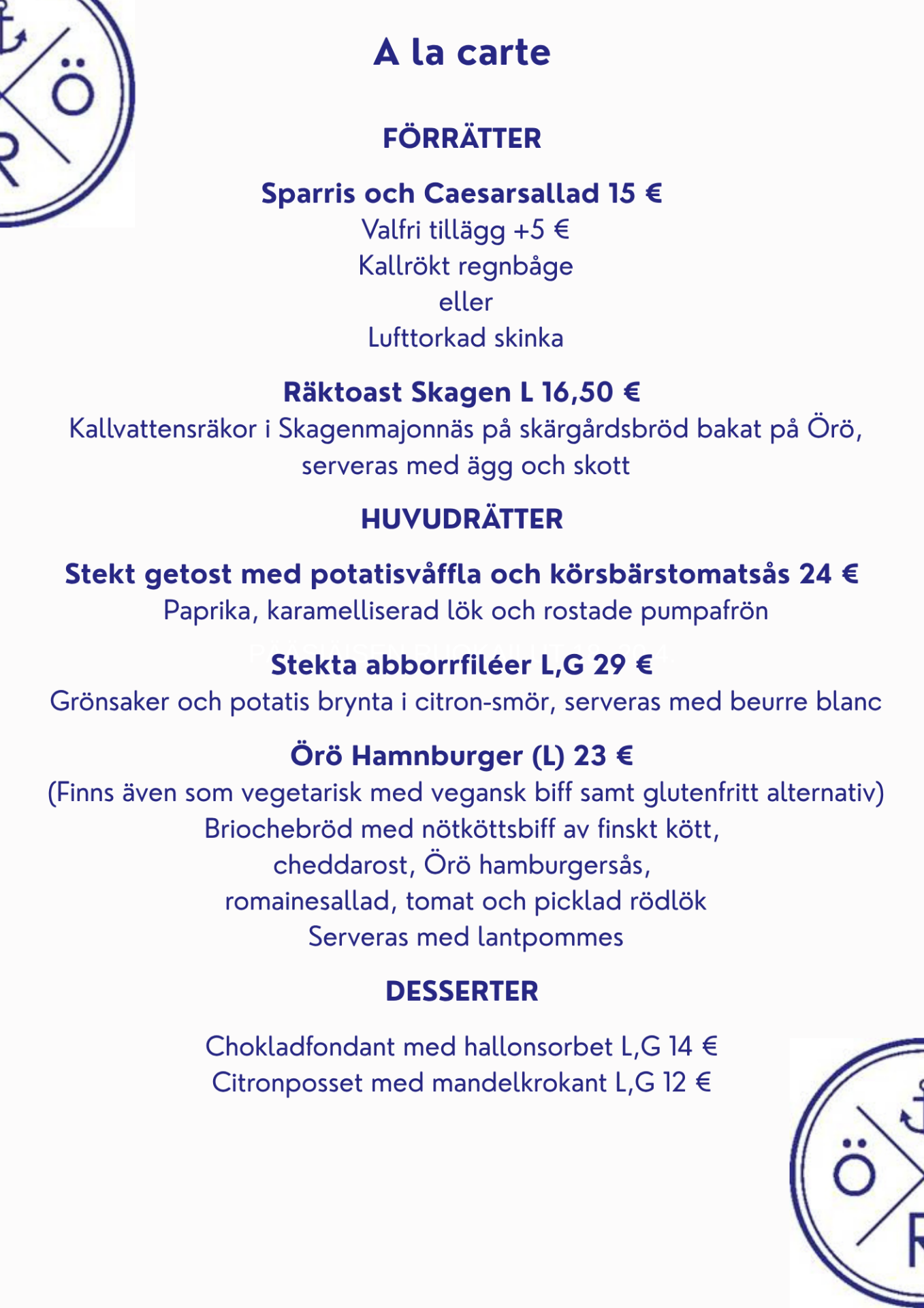 Lunch- och à la carte-beställningar gärna dagen i förväg, tack